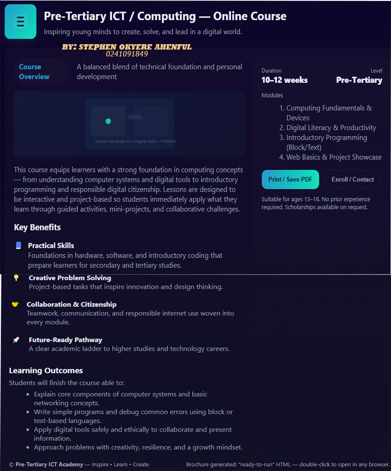 <div>© <strong>Pre-Tertiary ICT Academy</strong> — Inspire • Learn • Create</div>